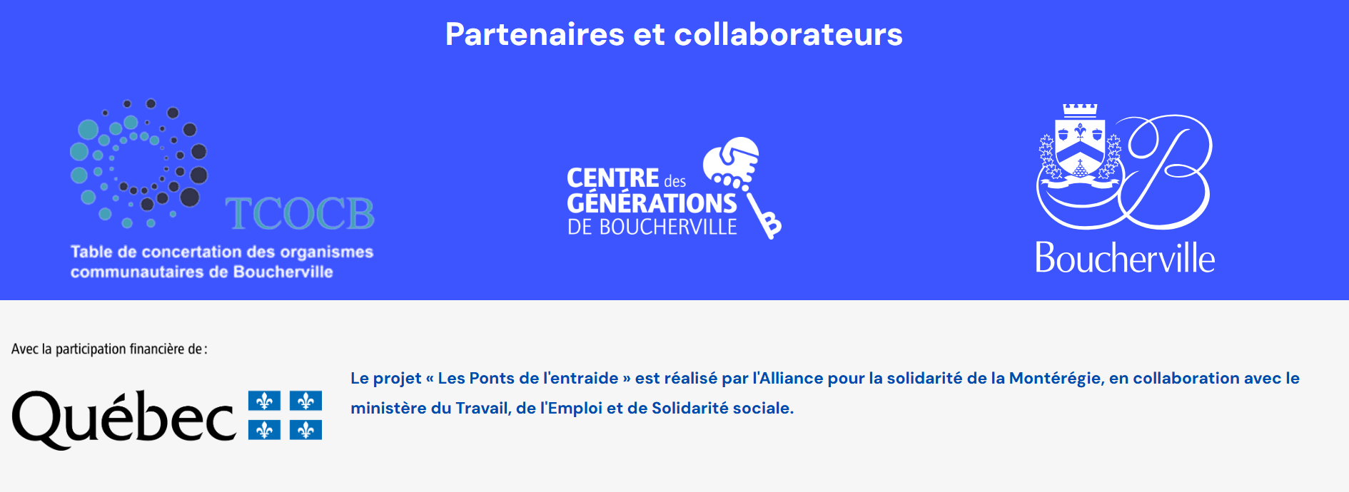 Le Centre d’action bénévole de Boucherville bénéficie de la générosité de nombreux partenaires qui, par leur appui, joignent leur voix à celle d’un organisme ayant à cœur le bien-être de sa communauté.